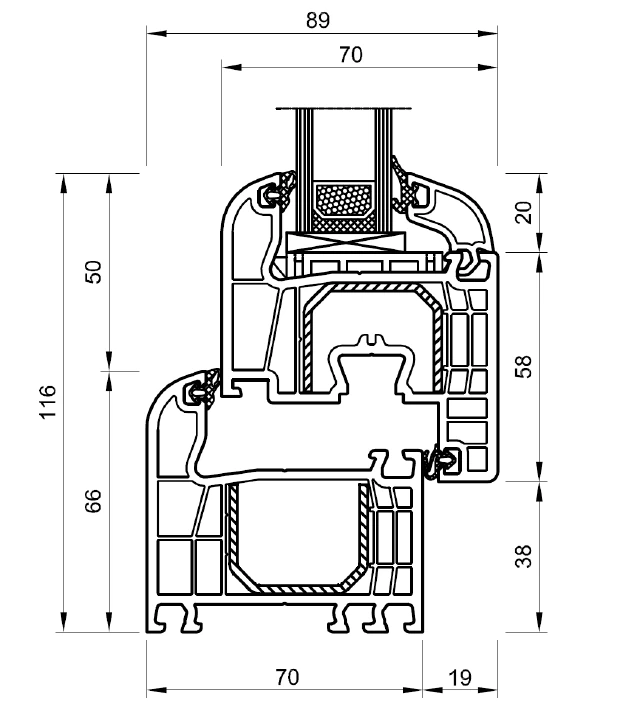 1,5 mm stålförstärkning av karm och båge (2 mm för dörrblad balkongdörrar) i form av en "C-sektion"